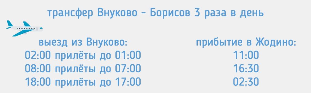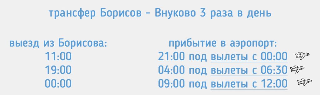 Расписание трансфера Внуково Борисов под прилеты до 1:00