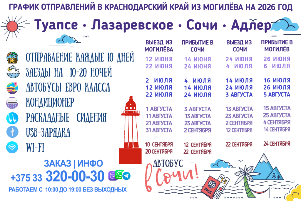 Могилев — Туапсе – Лазаревское – Сочи – Адлер автобус | график на 2026 год