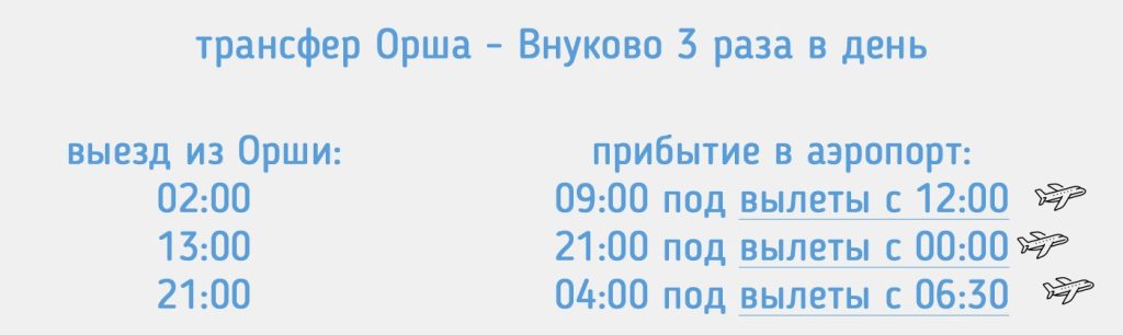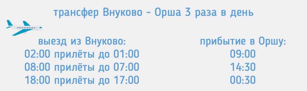 Расписание трансфера Внуково – Орша под прилеты до 1:00