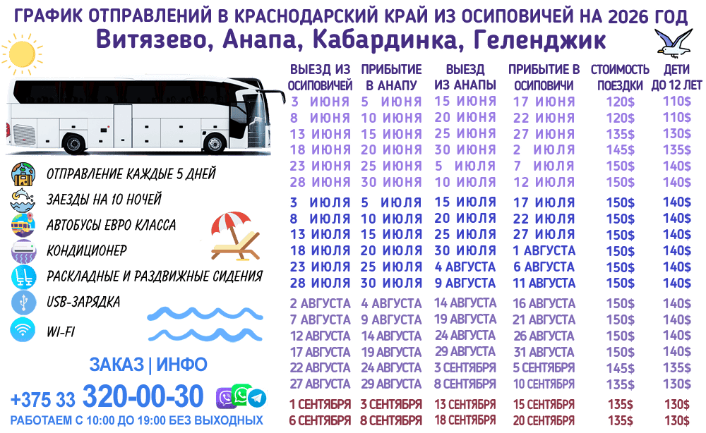 Как купить билет в Анапу и Геленджик с выездом из Осипович на лето 2026?