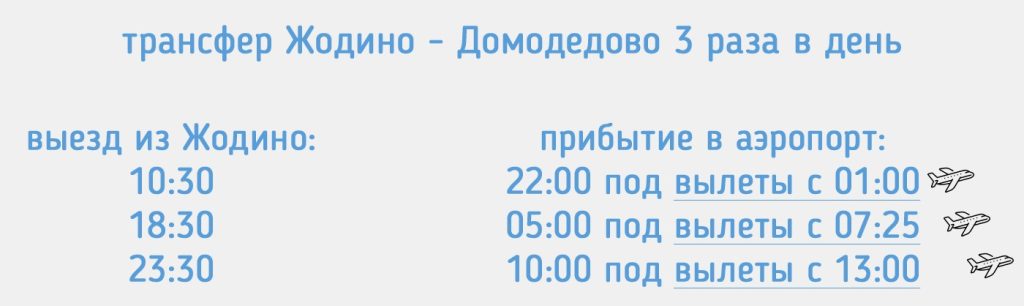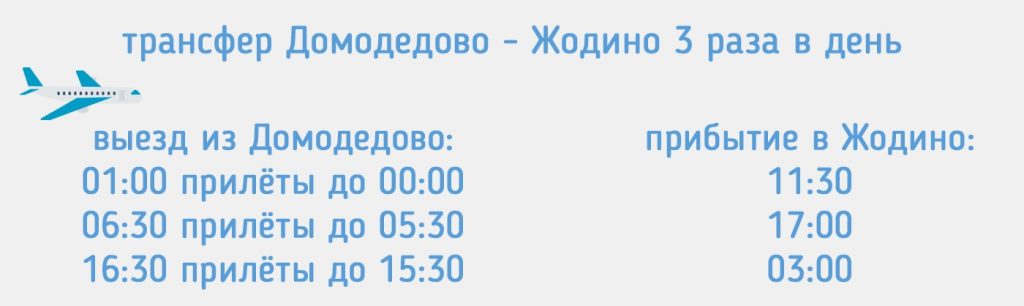 Расписание трансфера Жодино – Домодедово под вылеты с 1:00