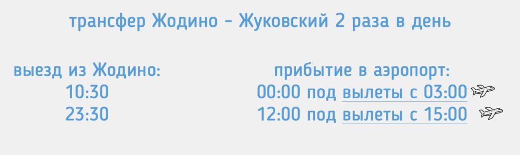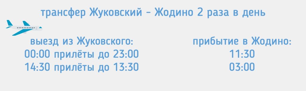 Расписание трансфера Жодино – Жуковский под вылеты с 3:00